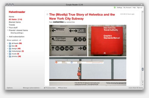 - Google Reader – http://helvetireader.com/