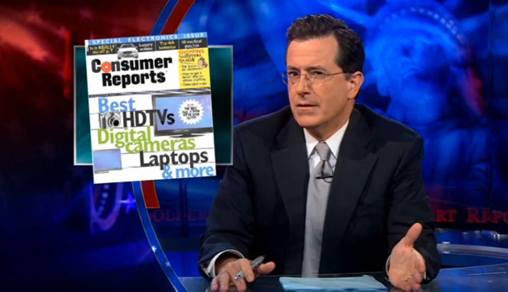 “…like the nervous nellies over at Consumer Reports Magazine. I ask you, if they know so much about what consumers want, why are they still a magazine?” – Stephen Colbert