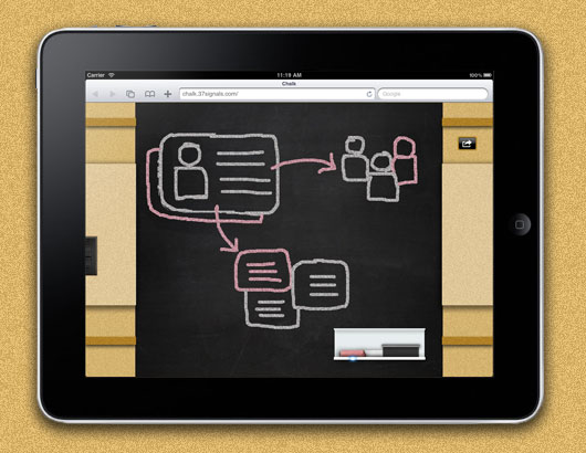 Chalk, a simple sketching app for the iPad. Interestingly, it’s entirely web based, with saving managed through the built-in Photos app.