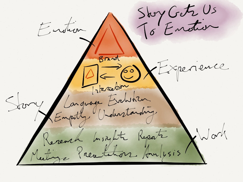 Without stories all we have are research and insights, and the other work that goes into marketing. That work is ill suited to create brands or experiences though. Its the tools of story, that we’re evolutionary adept to, that let us create powerful interactions and brands.
