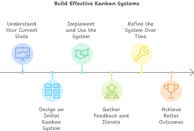 Instead of trying to implement an ideal end-state kanban system from the beginning, start with what you have and design a system that enables you to take the next best step, then make gradual changes based on feedback and experimentation.