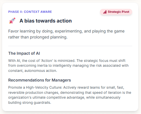 The impact of AI: Velocity demands that decision-making happen at the point of action (the prompt). Managers must decentralize power to the prompt engineers and the teams closest to the AI execution.